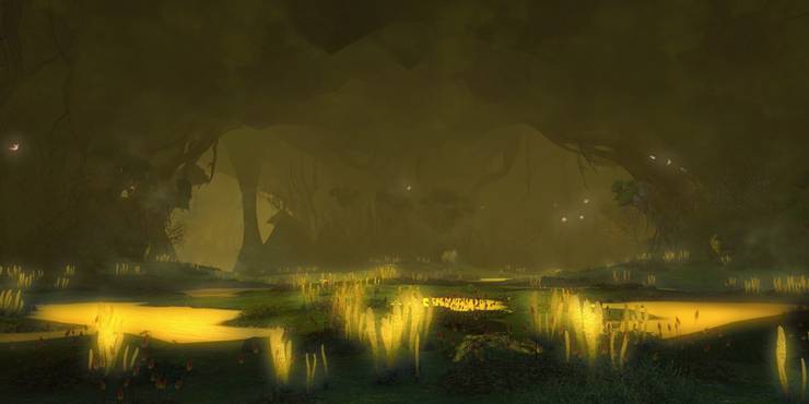 The first area of the Aurum Vale is labeled the Golden Pools, and as the name suggests, the area is just absolutely littered with Gold Bile. There are also several geysers around the pools that can shove you and your party members around if they happen to get caught up in a geyser eruption. Dotted around the room are a variety of enemies, including Elfstools, Lilies of the Vale, and large Nether Nix toads. The Giant Toads are the most dangerous of these threats, as they can grab party members and move them towards themselves, splitting the party, as well as possibly pulling them into Gold Bile, or even alerting more enemies. Most Adventuring parties try to avoid the area as much as possible by sticking to the left wall, and only fighting enemies that initiate first.